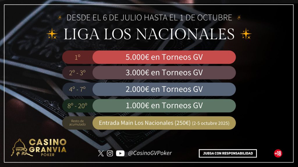 • 1 ticket de 5.000€ en Torneos GV