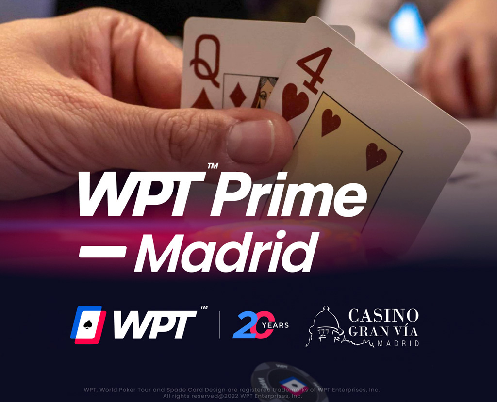 La primera visita del World Poker Tour a Madrid tendrá lugar en Casino Gran Vía, del 10 al 19 de Septiembre. La visita a la capital espa?ola se enmarca dentro del 20 aniversario del reconocido circuito de póker, que visitará nuestro histórico palacete con su versión WPT – Prime, siendo también la primera edición Prime del festival celebrada en Espa?a.